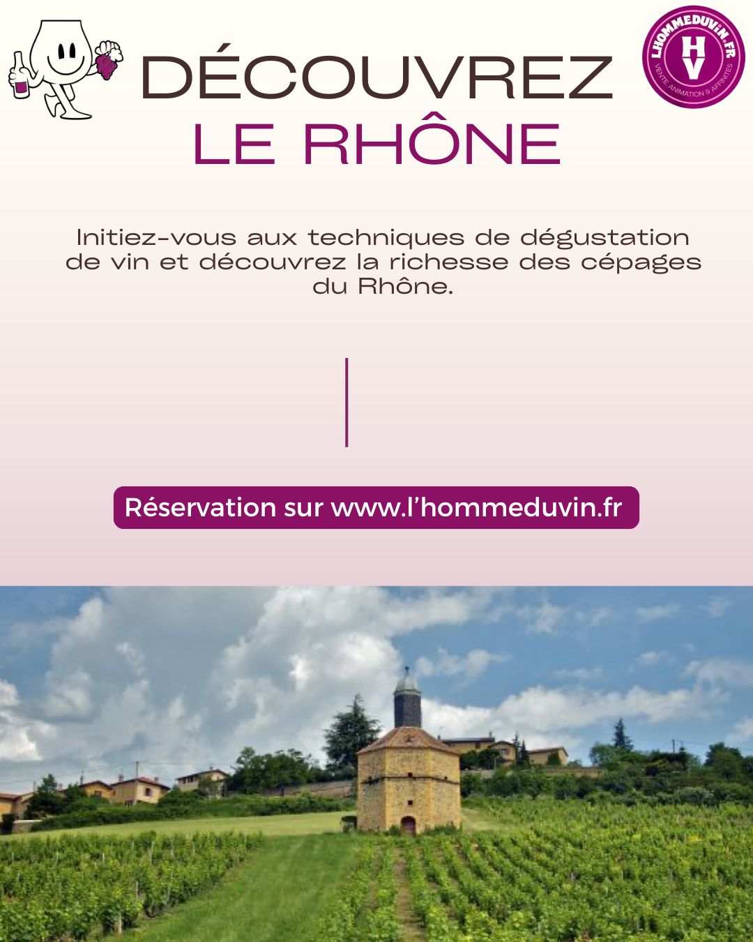 « Pour que le vin soit bon, la vigne doit voir le fleuve ! » Tel est le dicton bien souvent rappelé dans cette longue vallée. Ici, les vignes se nourrissent de cet environnement particulier, enclavées au Nord entre les Alpes et le Massif Central, étendues au Sud au pied du Mont Ventoux jusqu’aux Coteaux du Gard. Le Mistral fait la pluie et – surtout – le beau temps ! La Syrah et le Viognier sont les maîtres du Rhône septentrional, tandis que d’autres cépages en assemblage font la richesse des vins méridionaux. L’atelier est très complet avec la dégustation de 9 vins. Sur place, il y a possibilité de commander les vins avec une remise de 10% sur les prix publics. L’atelier dure environ 2 heures, et inclut un en-cas.